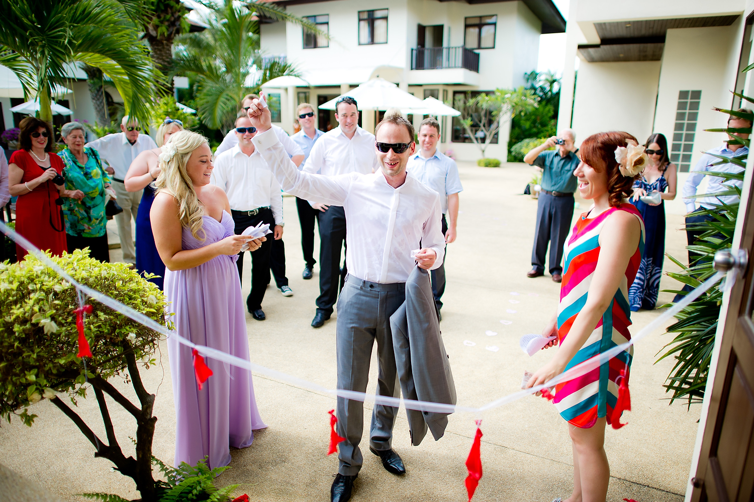Destination wedding on Koh Samui of Yulia and David, wedding couple from Russia and Australia. We started the coverage with traditional Russian games at Dreams Villa Resort. The groom had to pass through many stages to get to the bride.