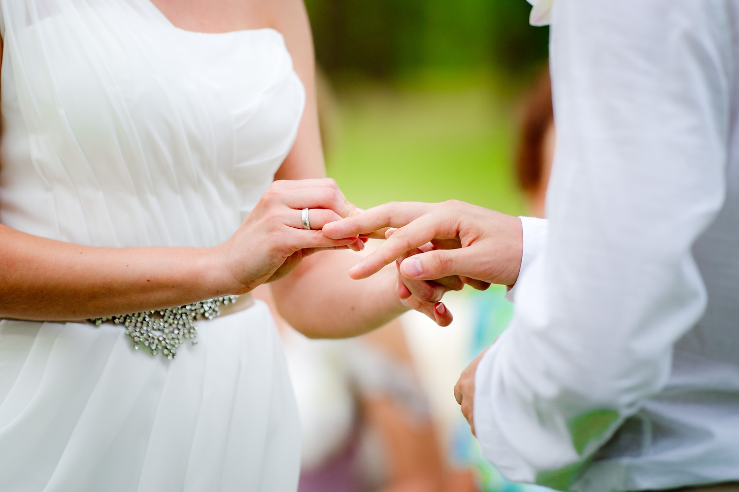 Ceremony was held on a grass field right next to a beach. Because this is a destination wedding, people who attended the wedding were limited to close friends and family members. It was very intimate wedding.