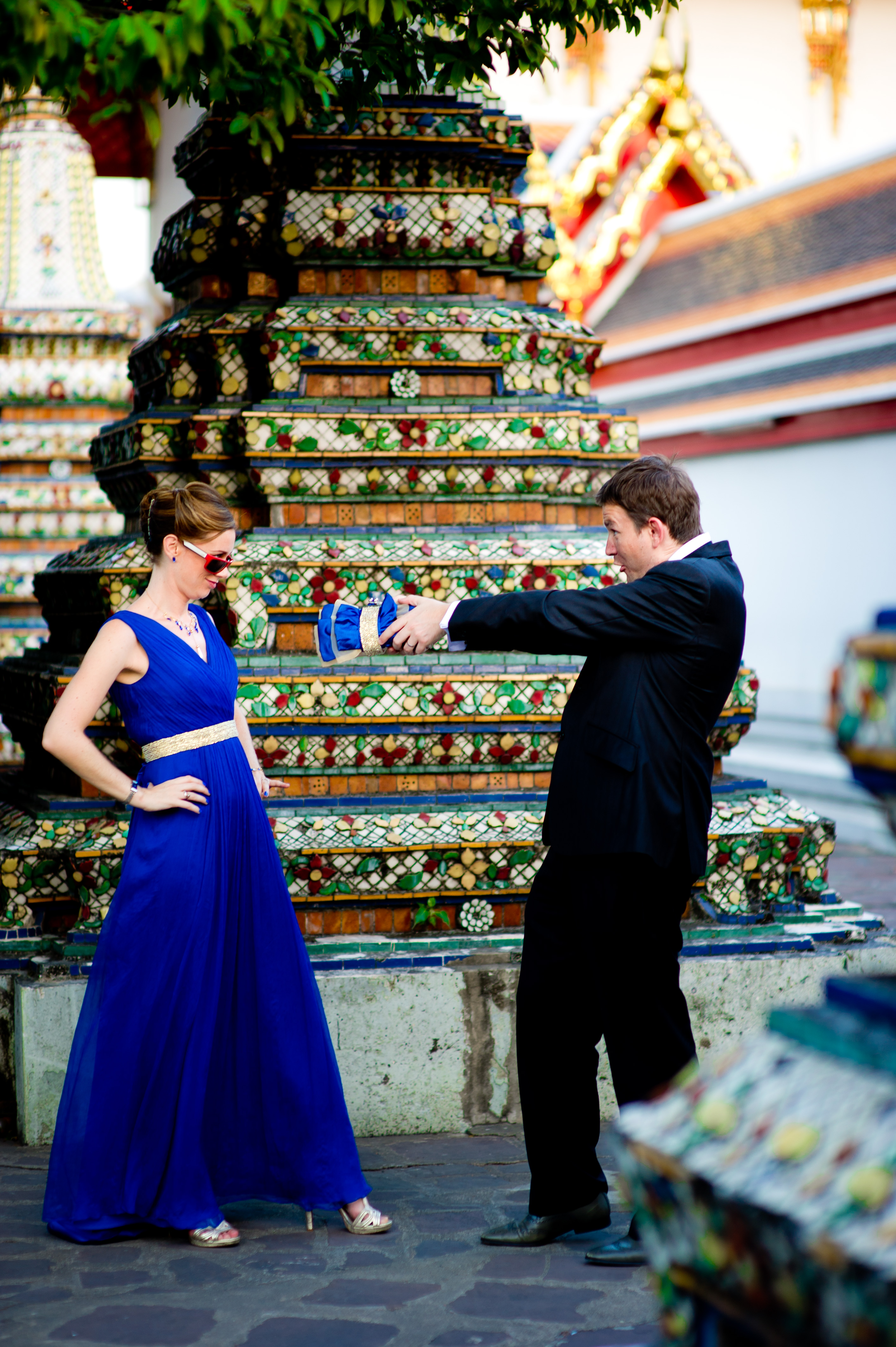 Post-Wedding session at Wat Poh in Bangkok, Thailand. NET-Photography | Thailand Wedding Photographer