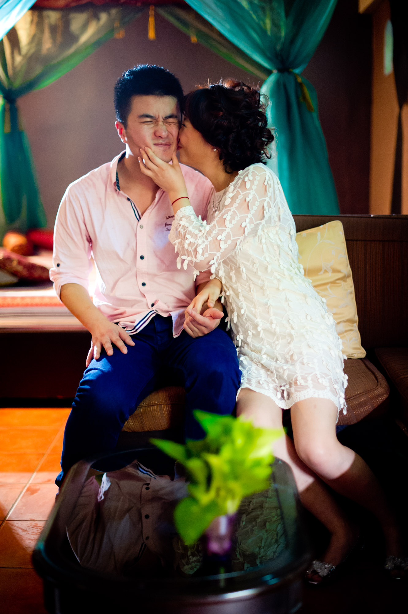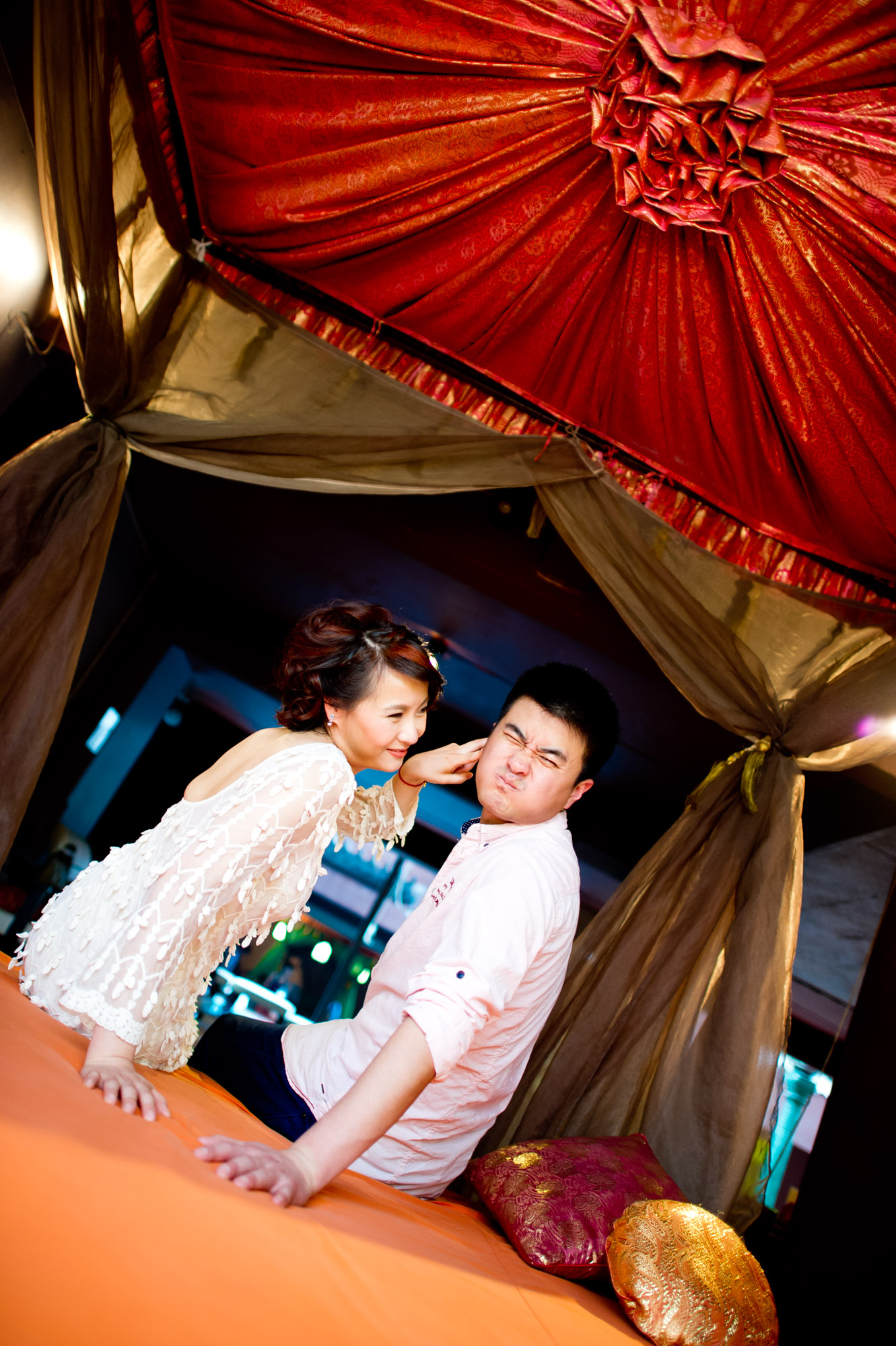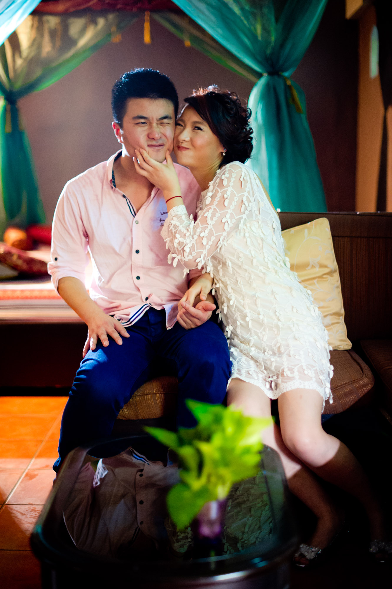 Bangkok, Thailand – Chinese couple playing with each other for their engagement session.
