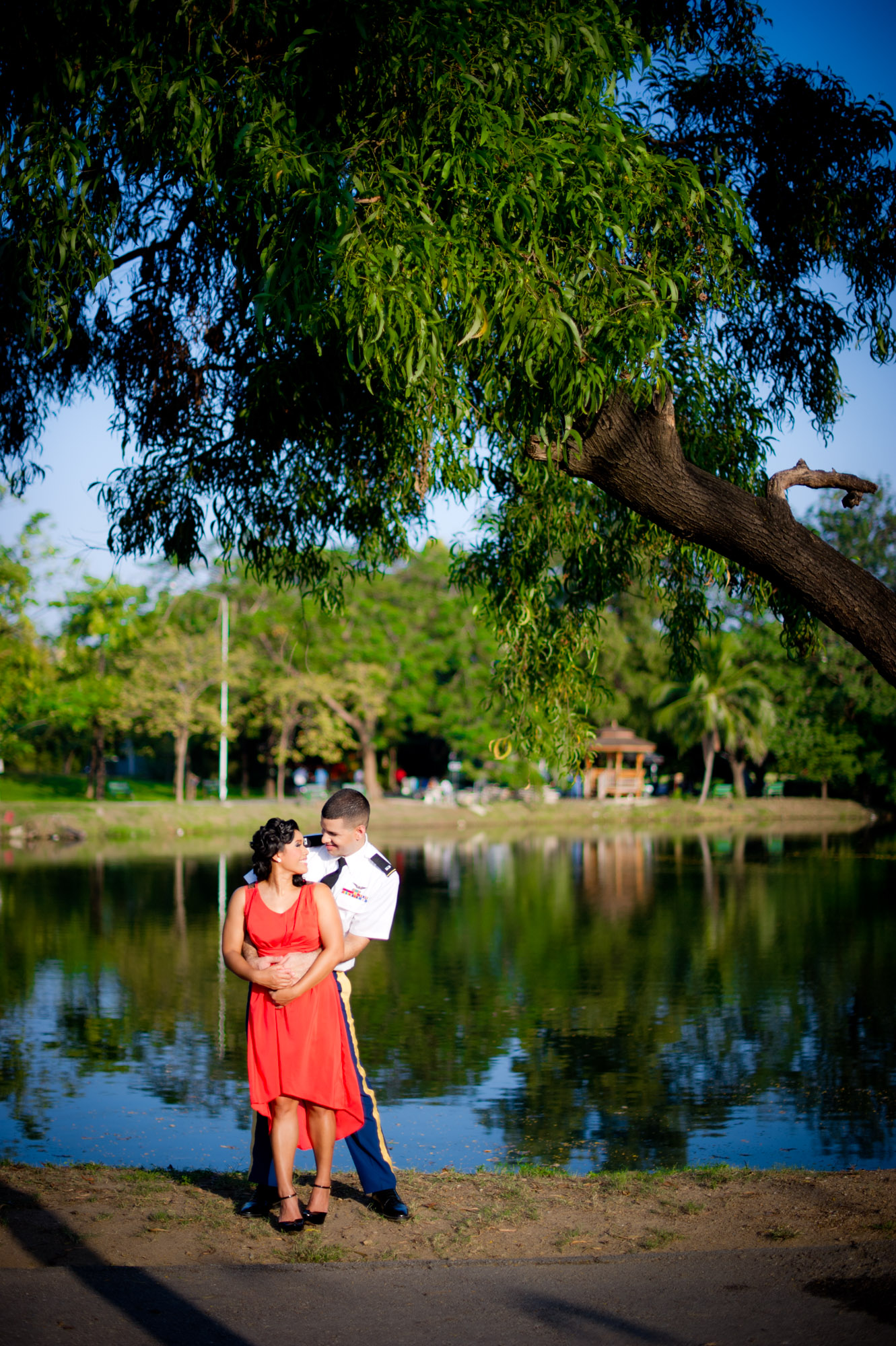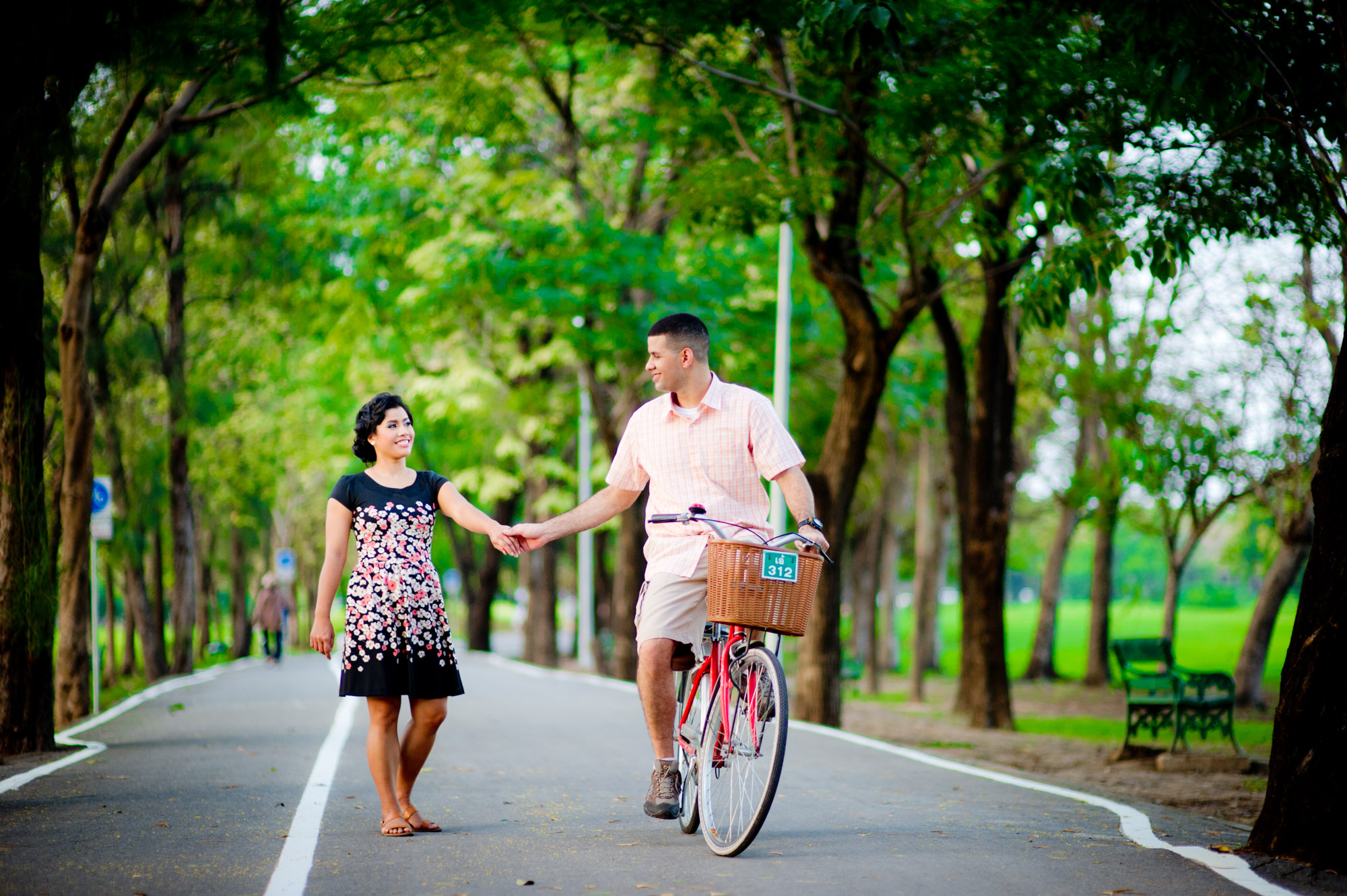 Thailand Bangkok Wedding Photographer – Engagement (Pre-wedding) pictures taken at Rod Fai Park, aka Railway Park, in Bangkok Thailand.