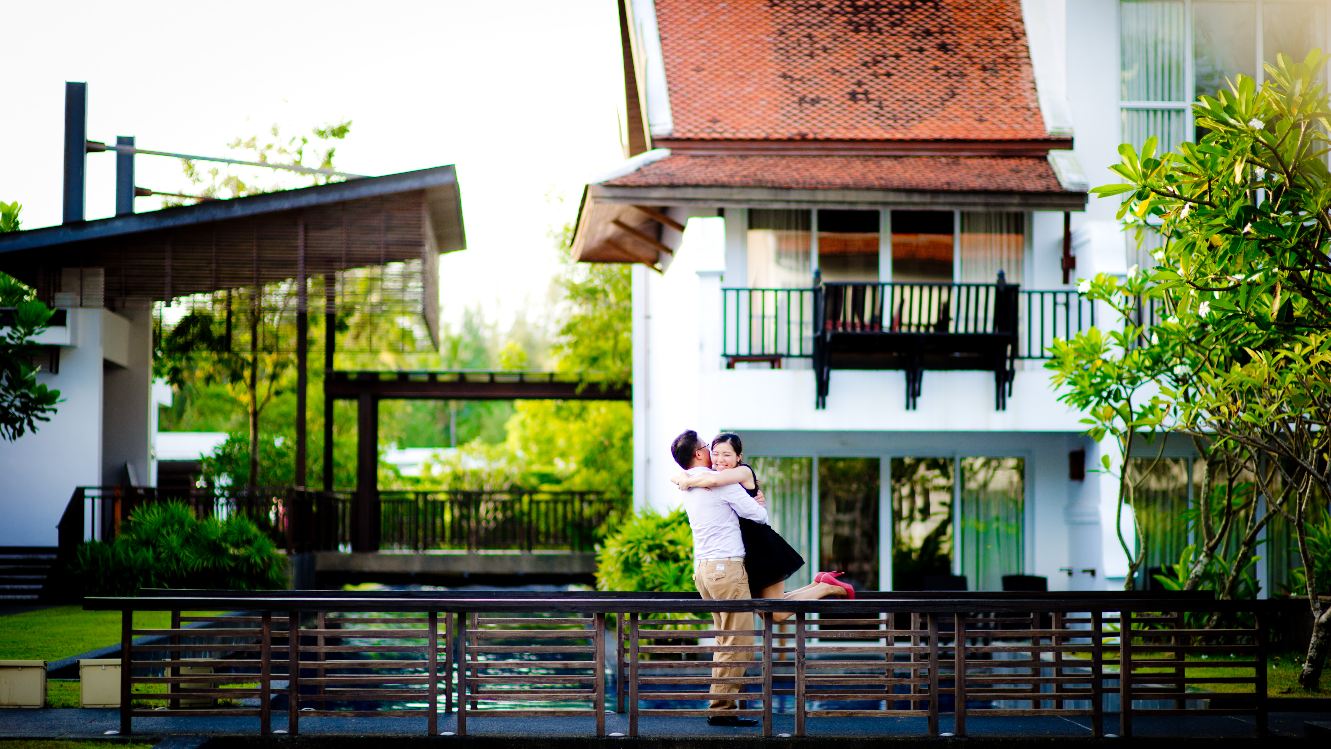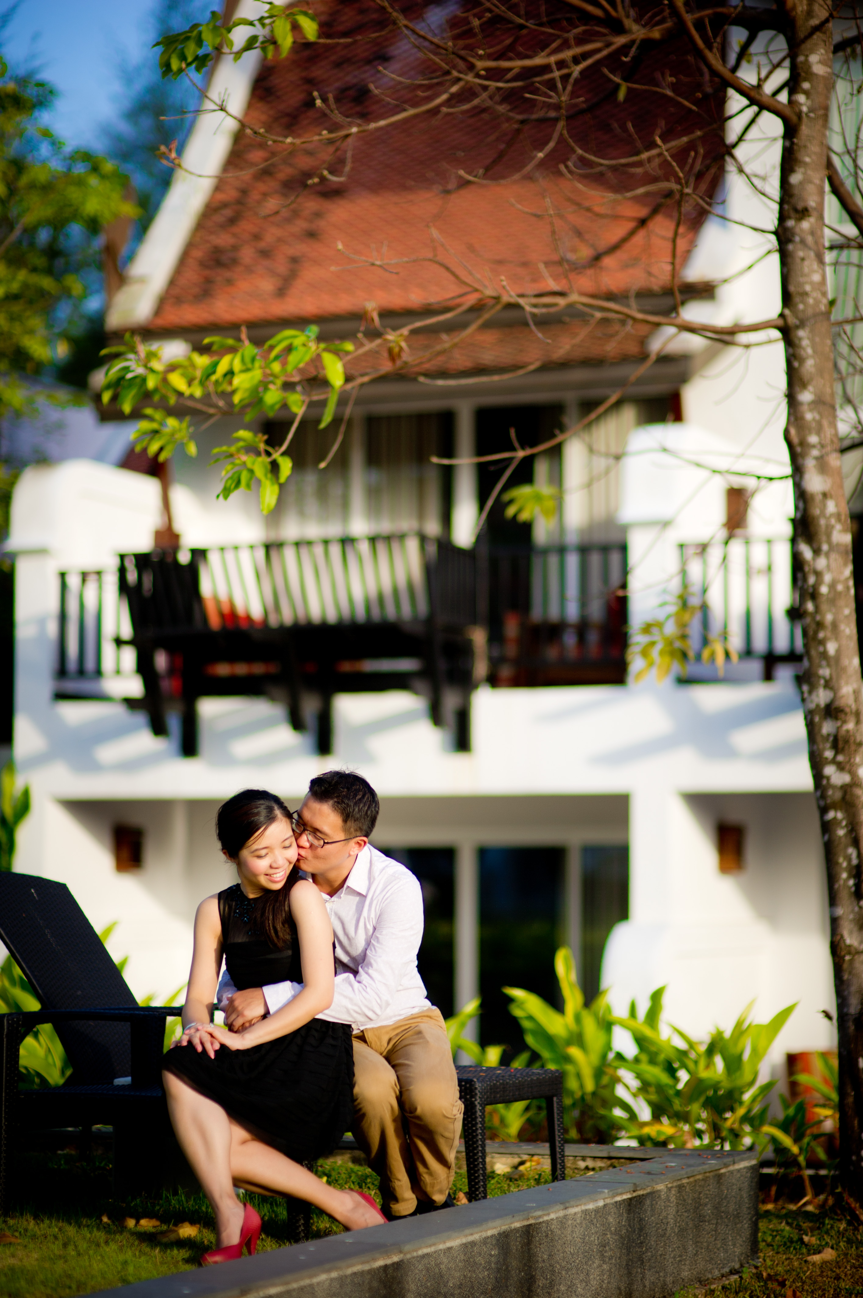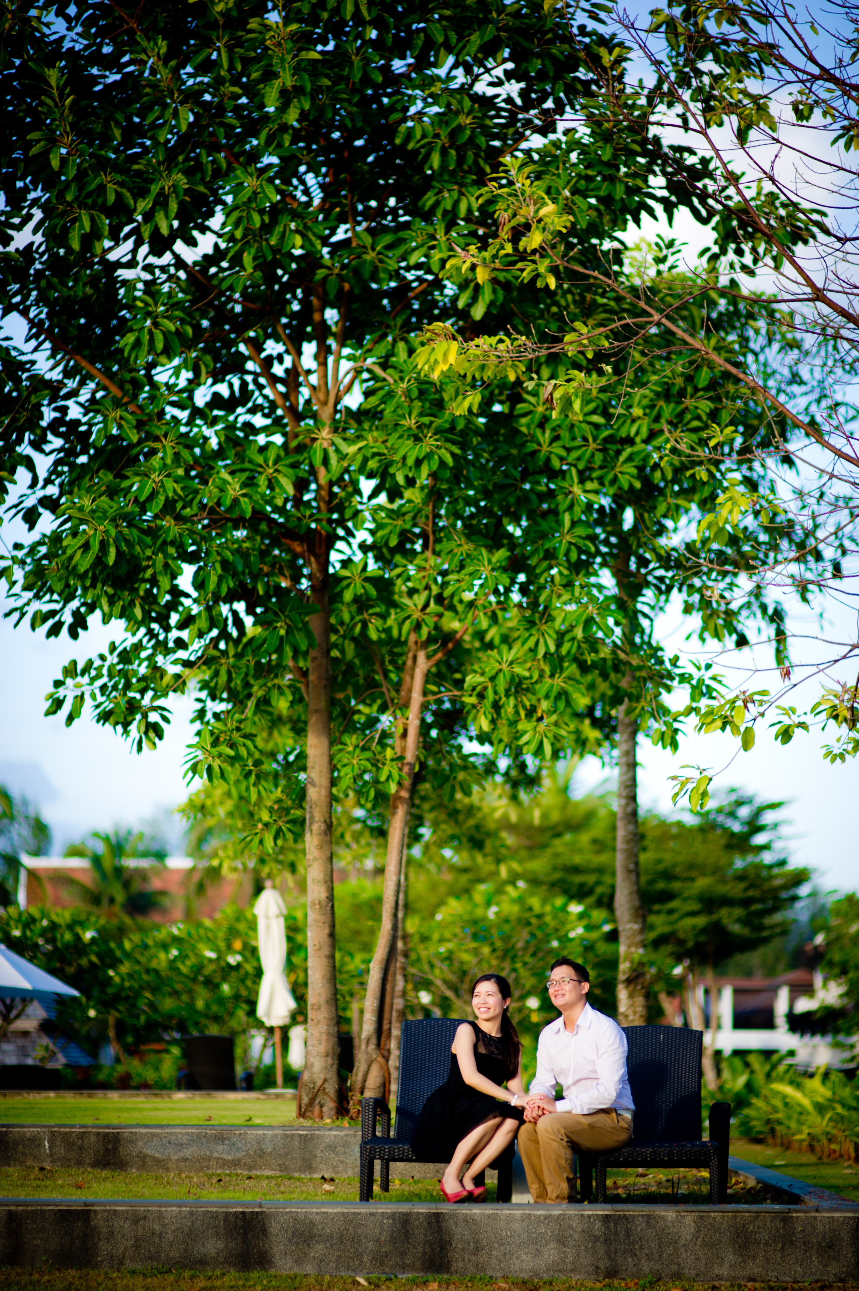 The couple flew to Thailand for their vacation and decide to use this opportunity to do pre-wedding photo shoot with us. This photo shoot session took 4 hours. We were able to get plenty of pictures around the hotel with few different outfits, including a wedding gown. This hotel is quite amazingly. It feels like it is in the middle of nowhere. Very quiet and not crowded at all. The beach is one of the best I’ve ever seen. Very clean and quiet. Usually we have to work around tons of people walking on the beach, but not this one. There was only few people there.