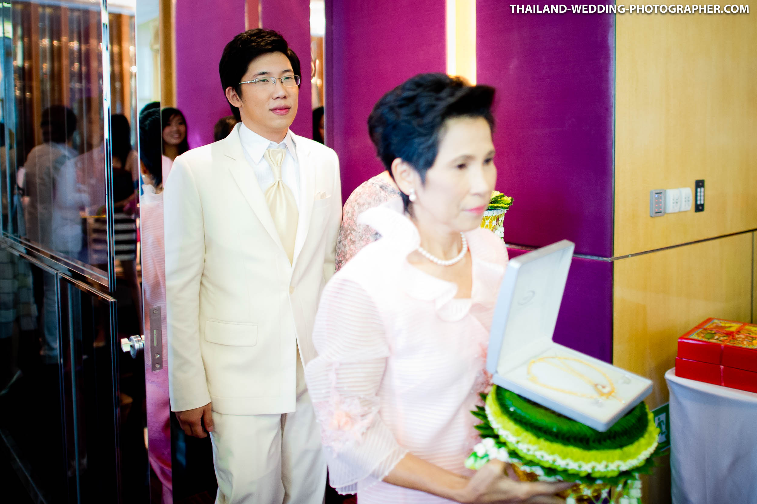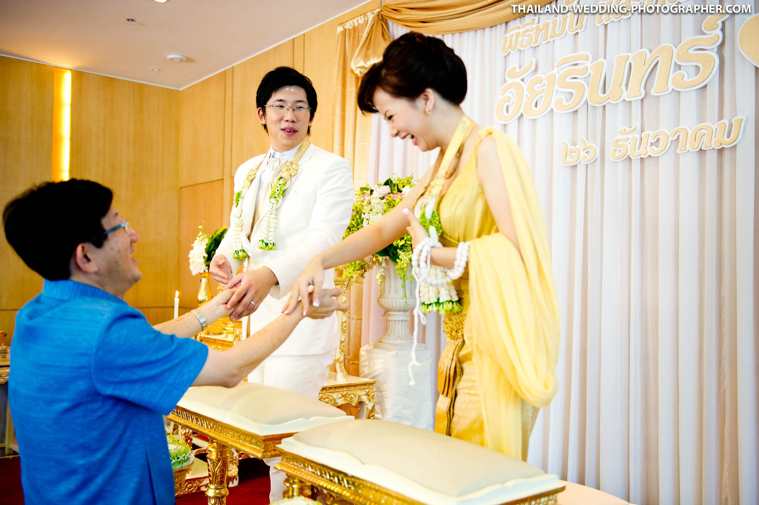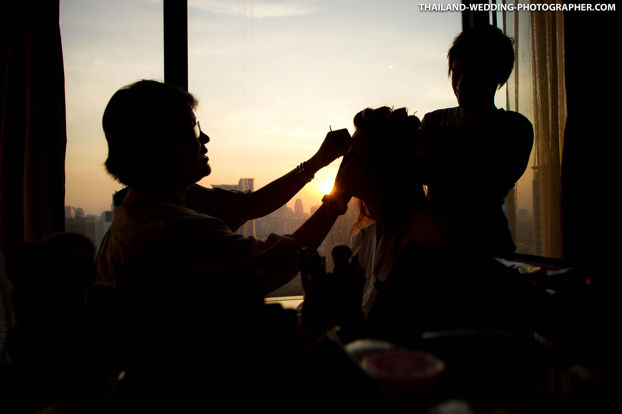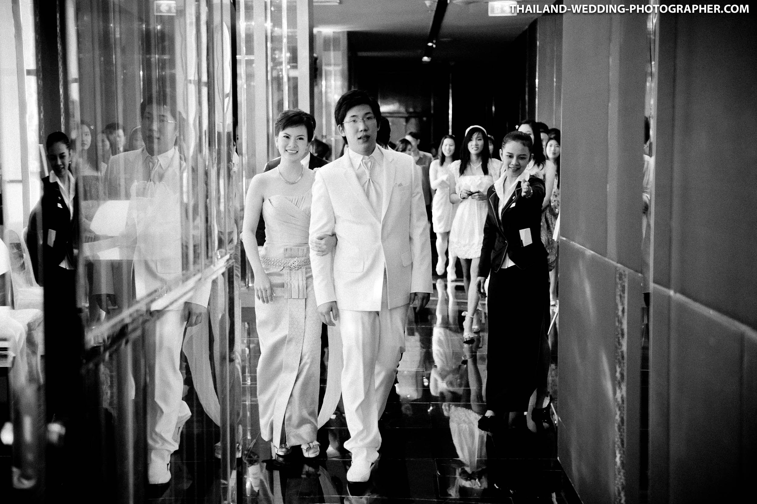 These are Thai wedding photos we photographed several years ago at Renaissance Bangkok Ratchaprasong Hotel in Thailand. Our wedding photography coverage started with getting ready in hotel room at 6.30AM. The wedding day consisted of small wedding parade, water pouring ceremony, lunch reception and some portraits of the bridge and groom around the area. Total photography hours for this wedding was 6 hours.