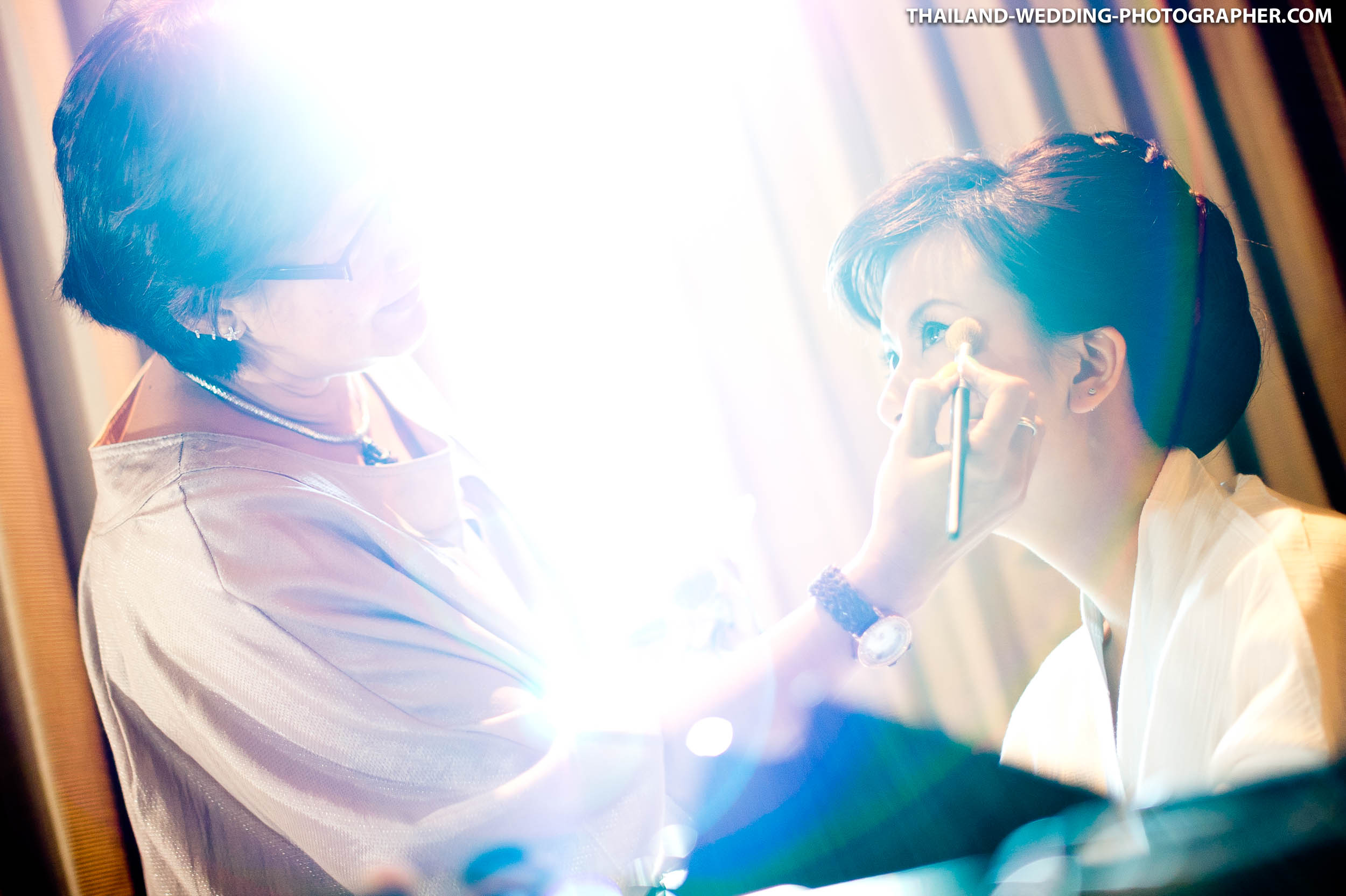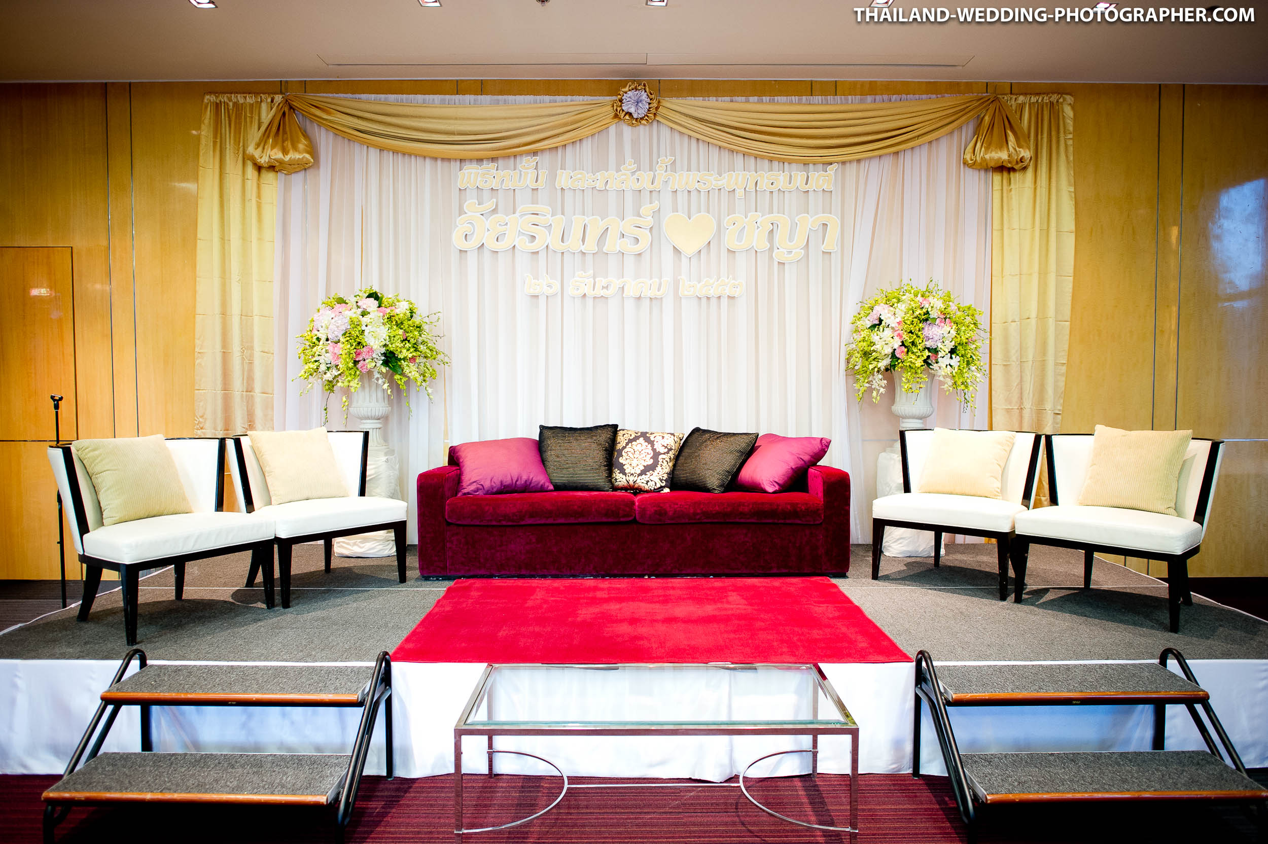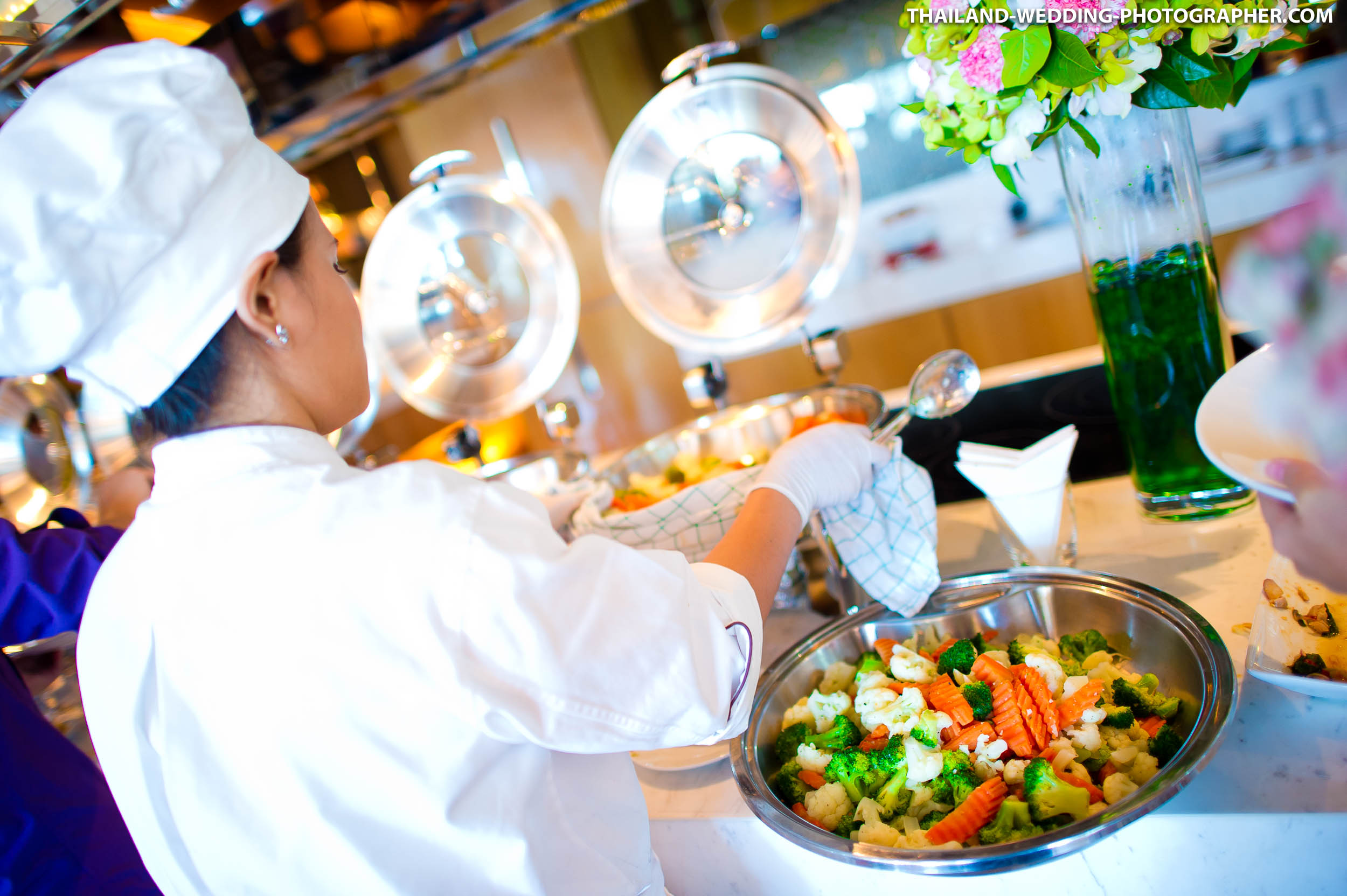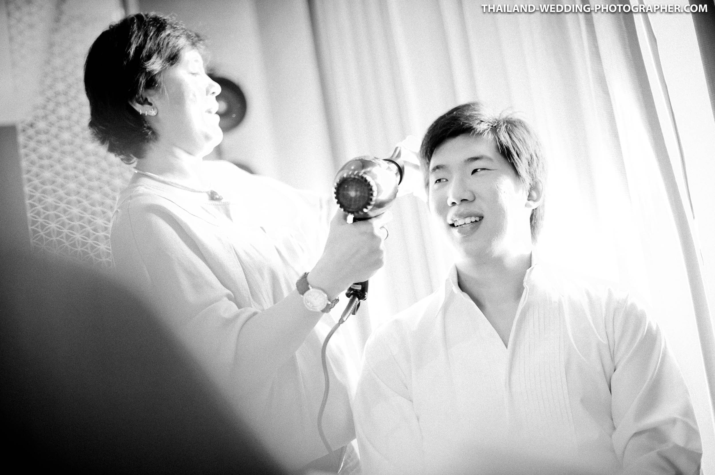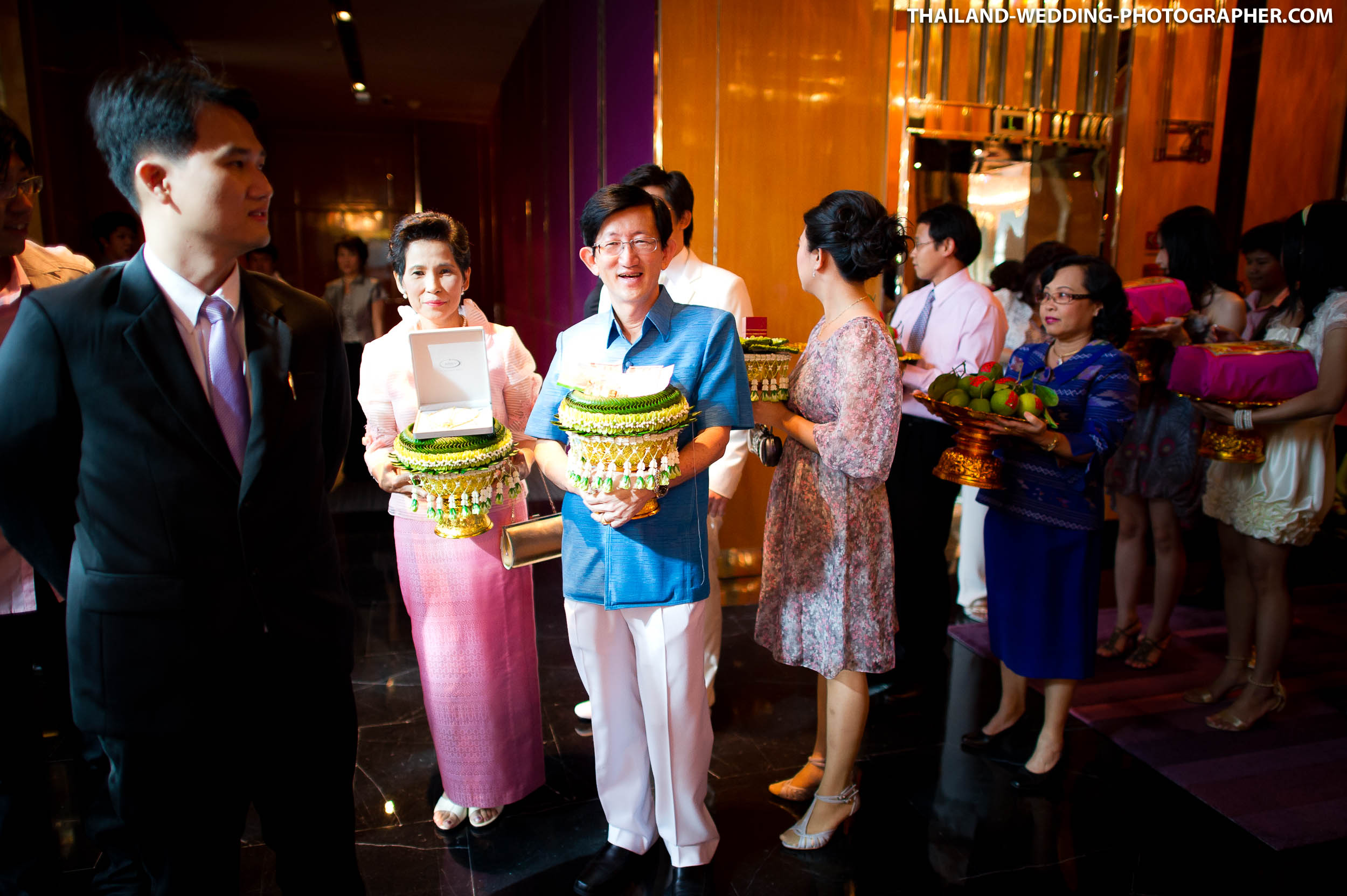 These are Thai wedding photos we photographed several years ago at Renaissance Bangkok Ratchaprasong Hotel in Thailand. Our wedding photography coverage started with getting ready in hotel room at 6.30AM. The wedding day consisted of small wedding parade, water pouring ceremony, lunch reception and some portraits of the bridge and groom around the area. Total photography hours for this wedding was 6 hours.