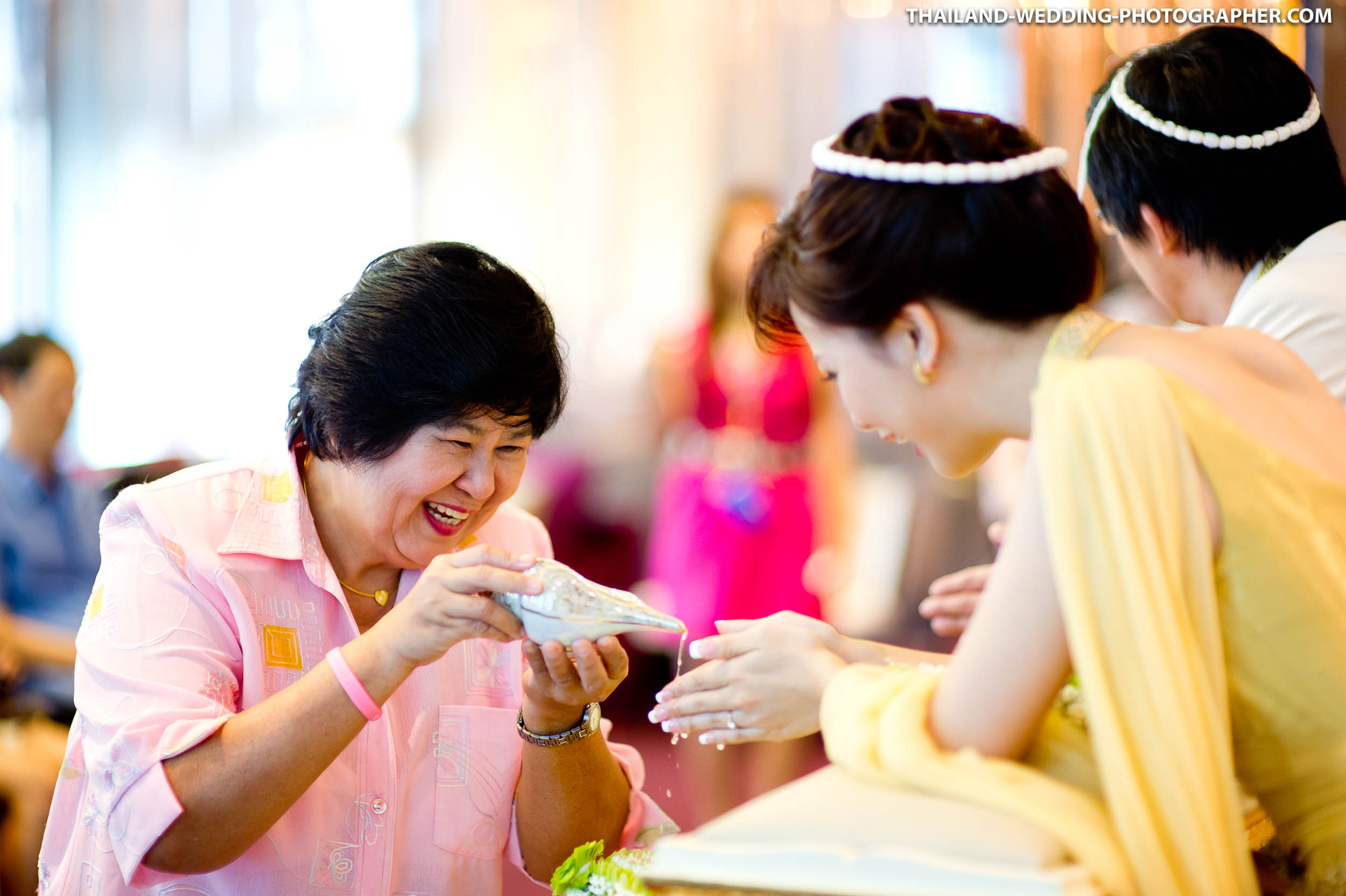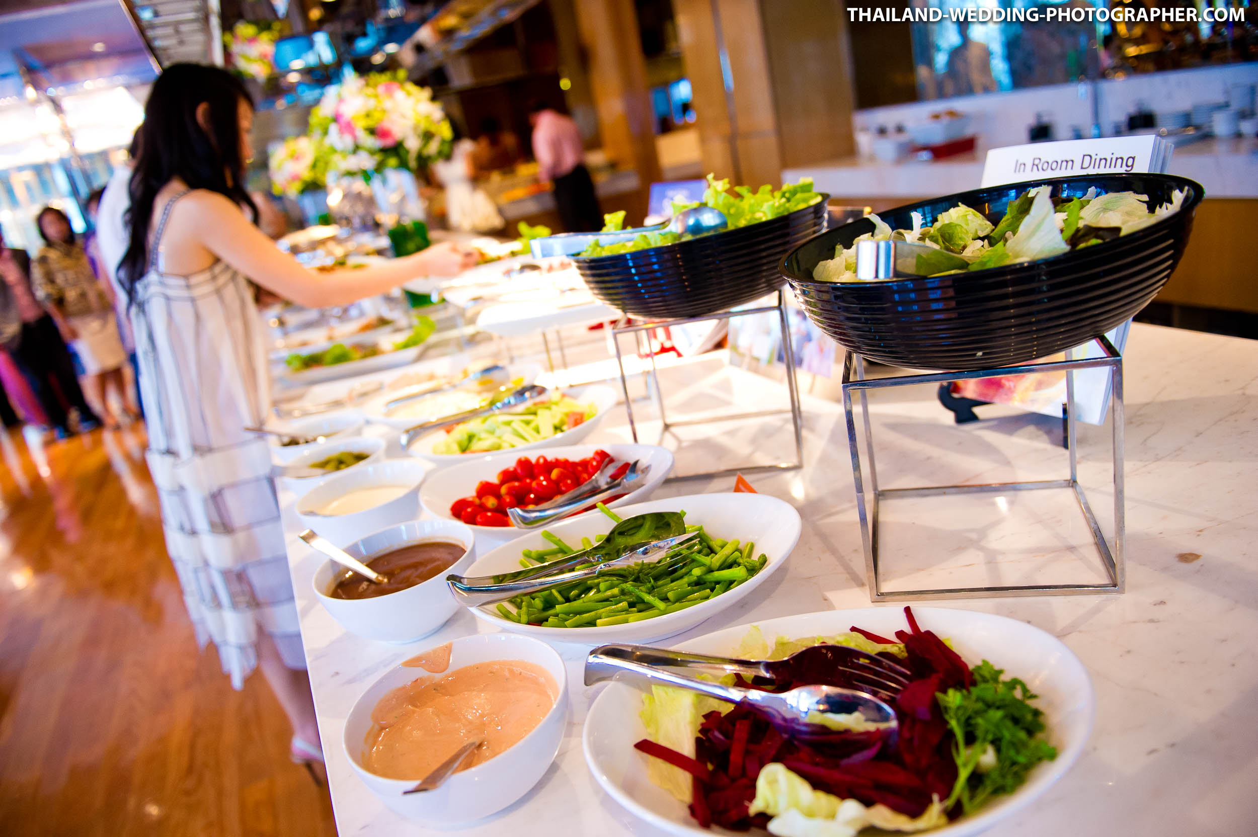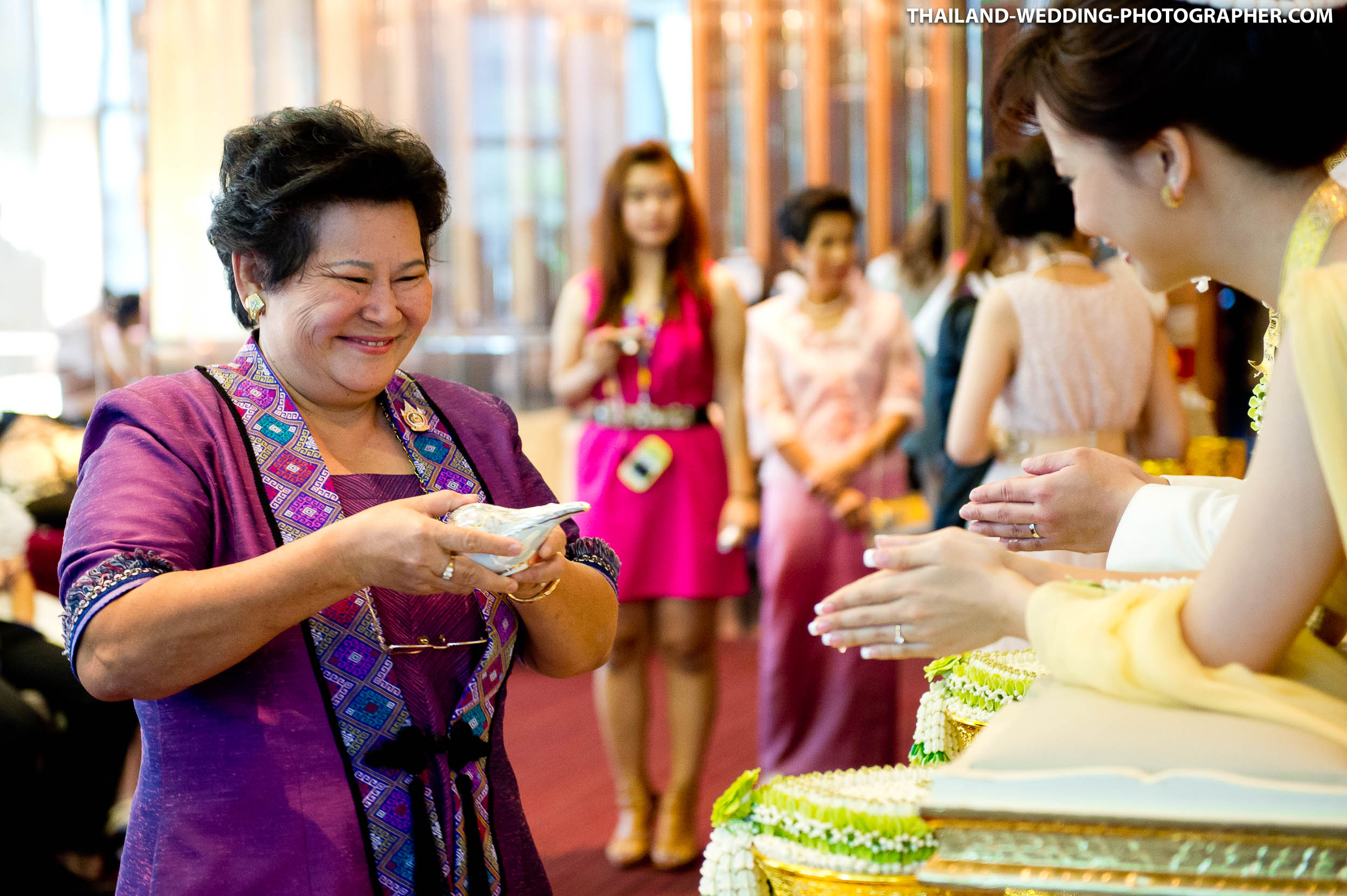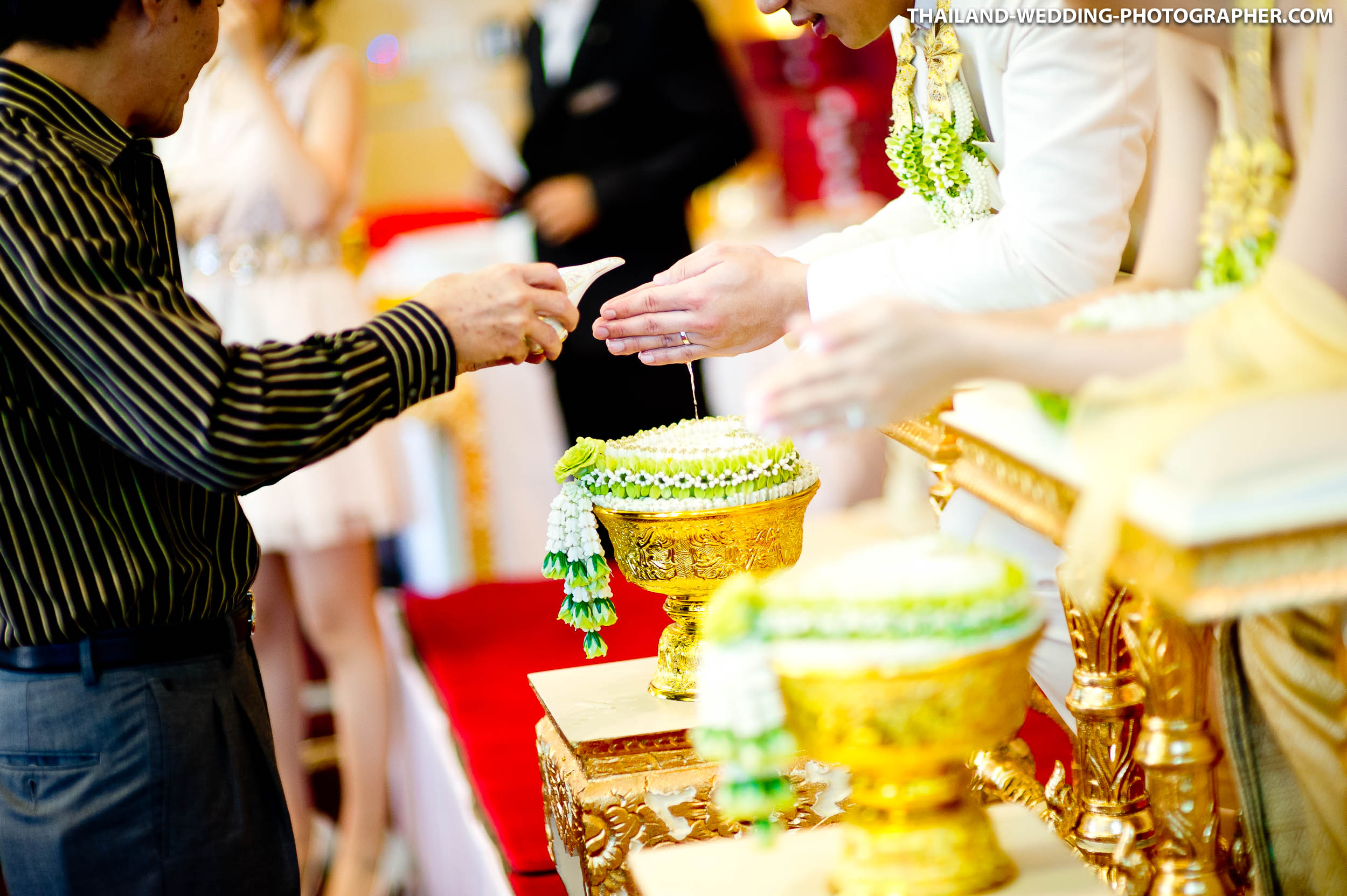 These are Thai wedding photos we photographed several years ago at Renaissance Bangkok Ratchaprasong Hotel in Thailand. Our wedding photography coverage started with getting ready in hotel room at 6.30AM. The wedding day consisted of small wedding parade, water pouring ceremony, lunch reception and some portraits of the bridge and groom around the area. Total photography hours for this wedding was 6 hours.