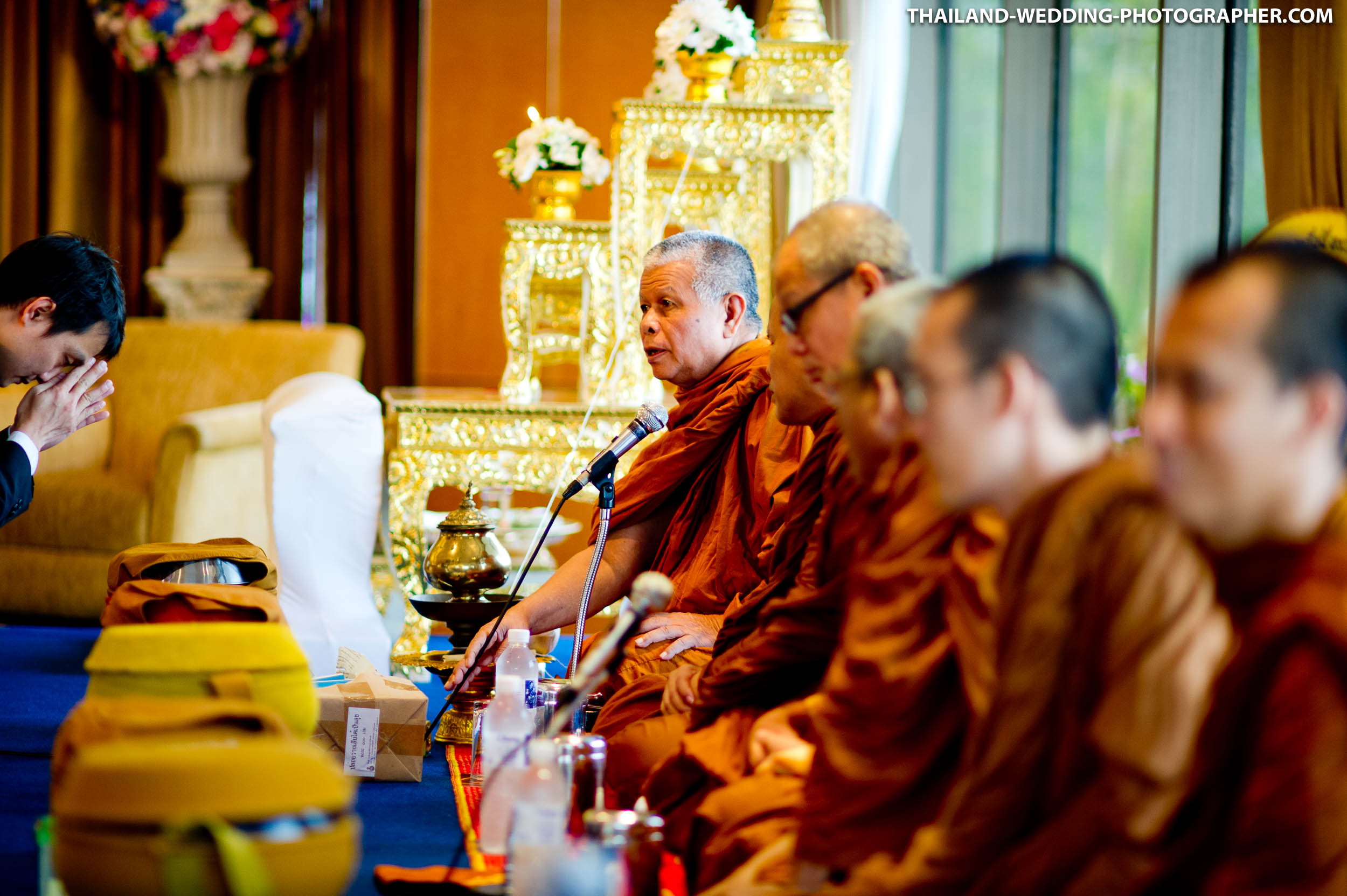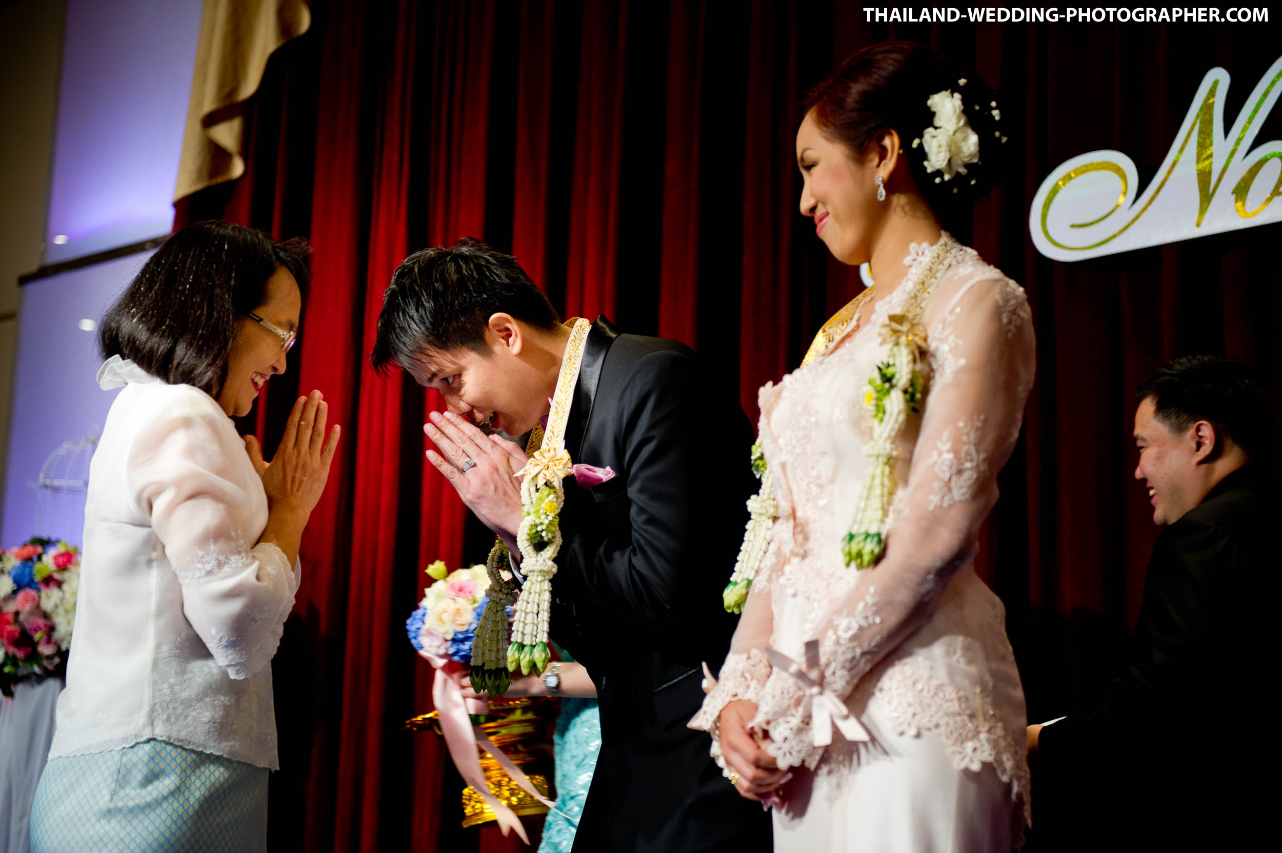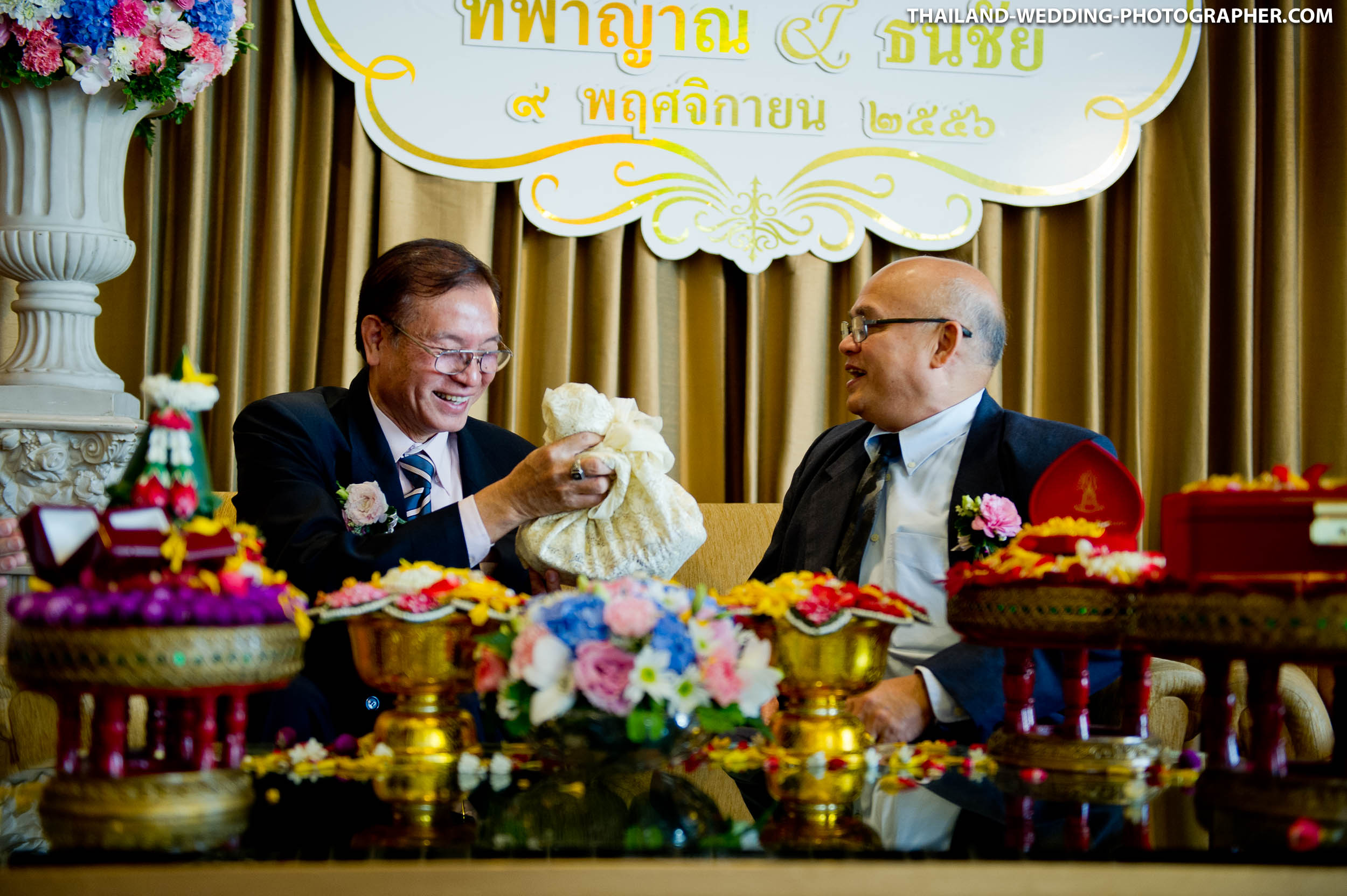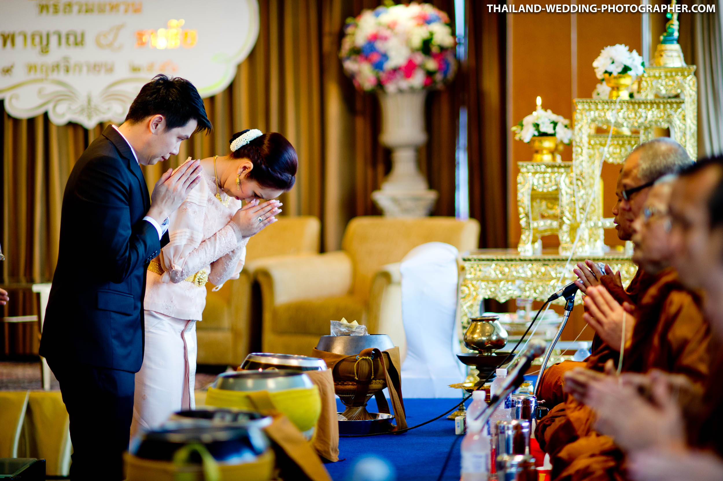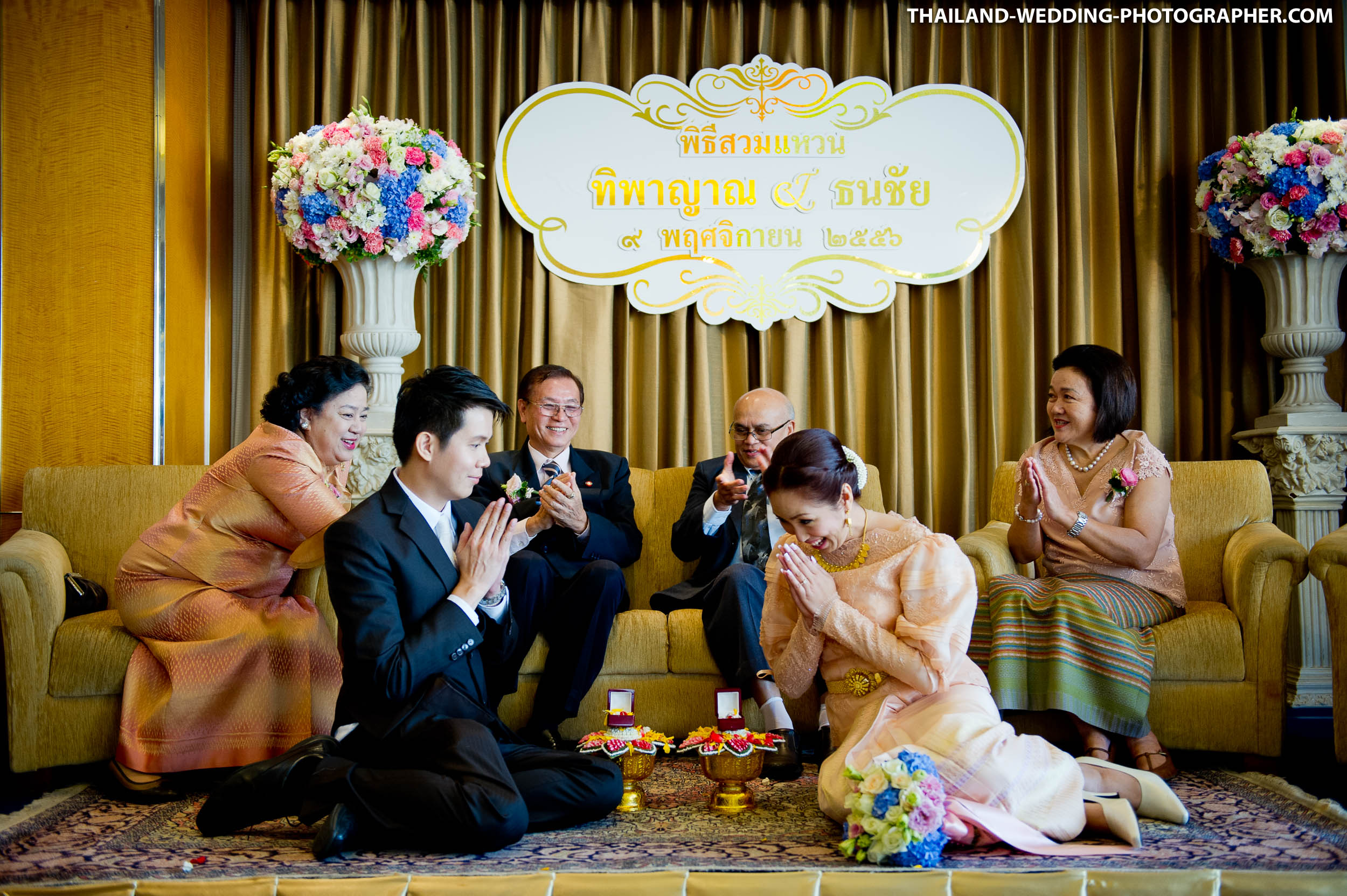 Here are some photos from a Thai engagement and wedding ceremony at Royal Orchid Sheraton Hotel & Towers in Bangkok, Thailand. Our wedding photography coverage started at 7AM with Thai engagement ceremony. Followed by, brunch, another getting ready and wedding reception.