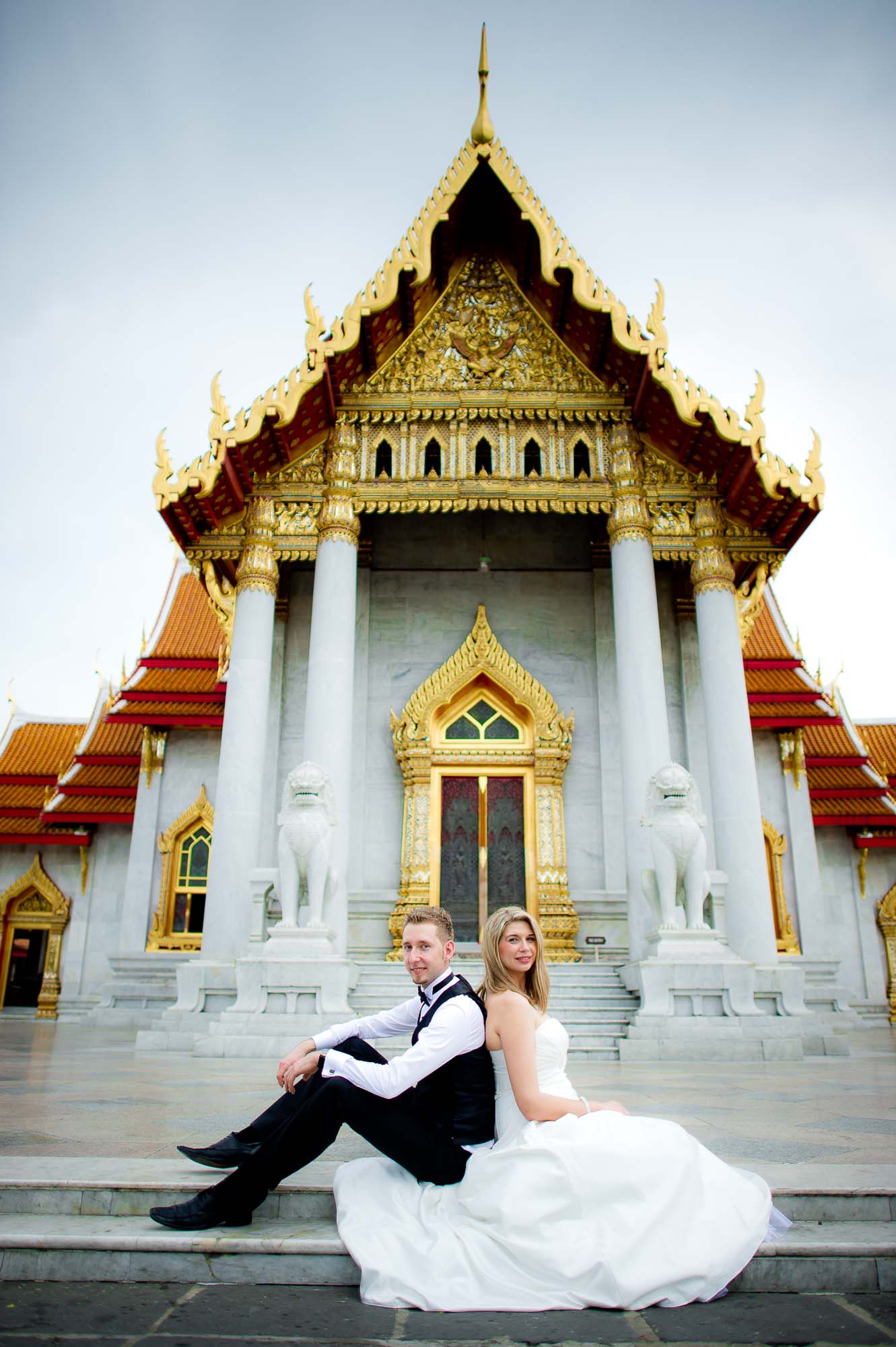 Destination wedding photos of a wedding couple from Poland. We started the session with the couple getting married at Embassy of Poland in Bangkok before proceeded to Marble Temple and Rama VIII Suspension Bridge for the remainder of the photo session.
