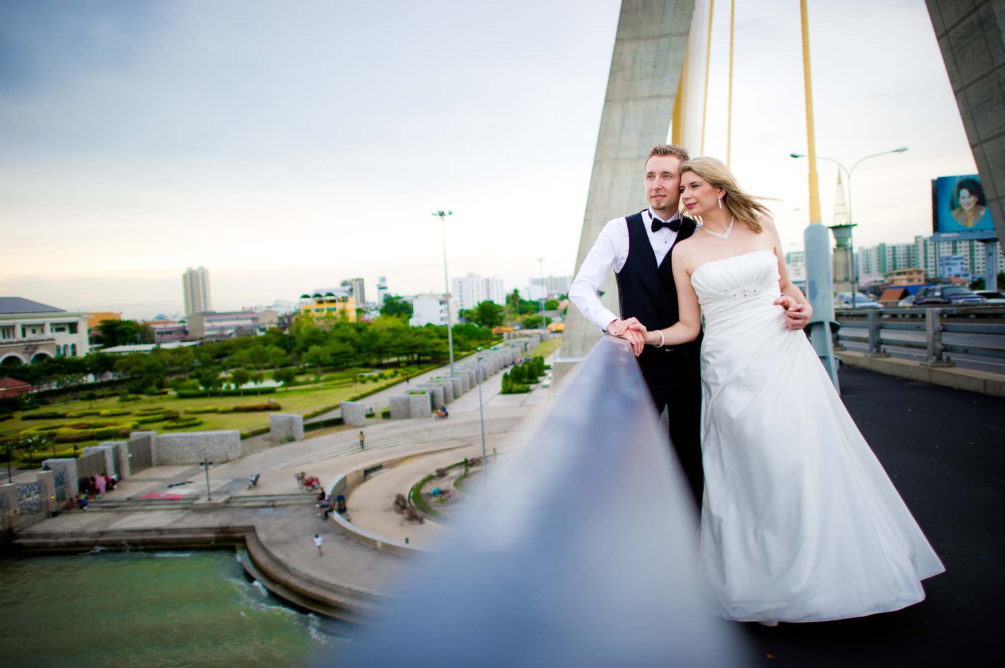 Pre-Wedding (Engagement Session) photo taken on Rama VIII Bridge in Bangkok, Thailand.